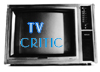 Description: Words flashing, "TV Critic" on an old television
